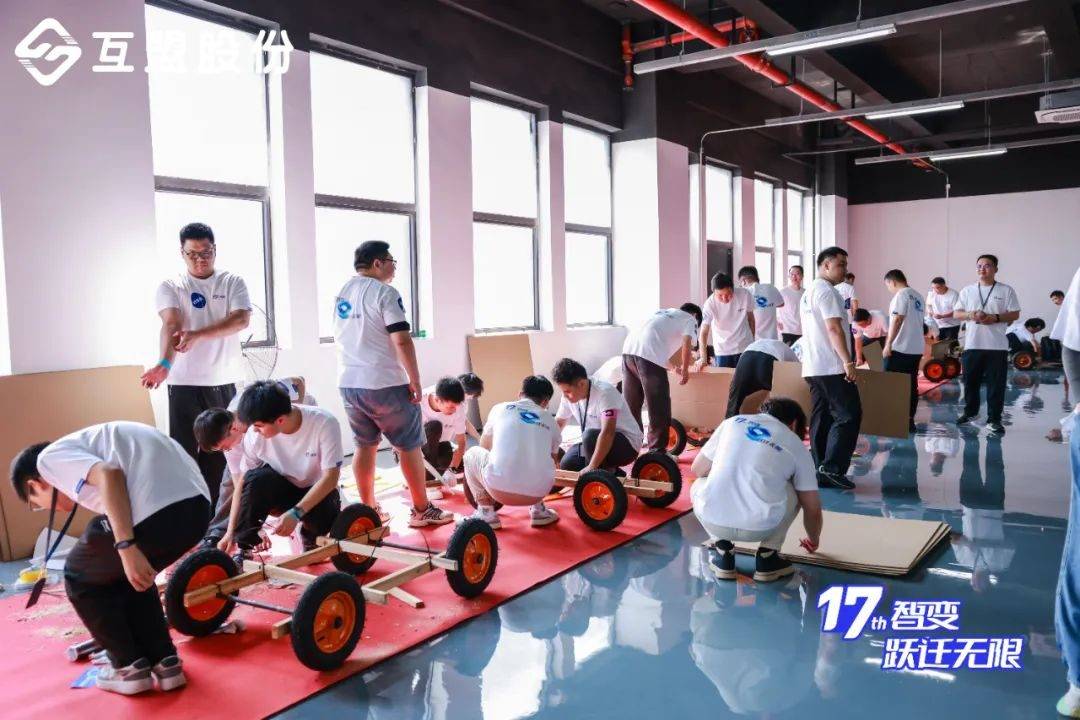 庆典现场气氛持续升温,高潮迭起。 其中,沉浸感十足的 “极速创想——赛车制作与竞速” 团建环节,无疑点燃了全场的最高沸点。各团队成员瞬间化身 “极速工程师” 与 “赛道勇士”,在有限的时间内脑力激荡、通力协作。智慧的火花在讨论中迸射,灵感的蓝图迅速转化为现实——一辆辆凝聚着集体智慧、彰显独特风格的“互盟战车”在巧手中诞生。